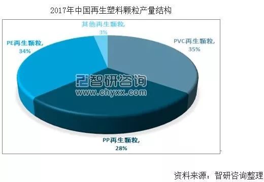 目前,我国再生塑料颗粒产量主要有PVC颗粒、以及PP颗粒。其中PVC颗粒、占比最大分别达到了35%和34%。
